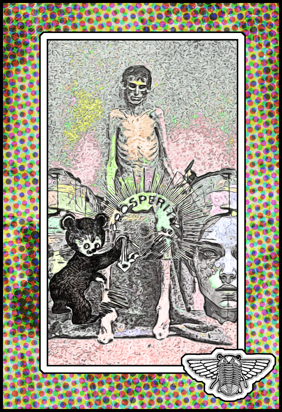Collage, no theme: top, an 1865 photo (Link1) of a survivor of the infamous Confederate prison Andersonville. I had a relative who was a P.O.W. in Andersonville. From a 1930 comic magazine (Link2), a cute toy bear points to a rising sun labelled "Prosperity". And from the art site DeviantArt, Canadian artist Xezbeth uploaded this picture of three supermodel types (Link3).