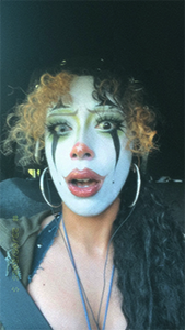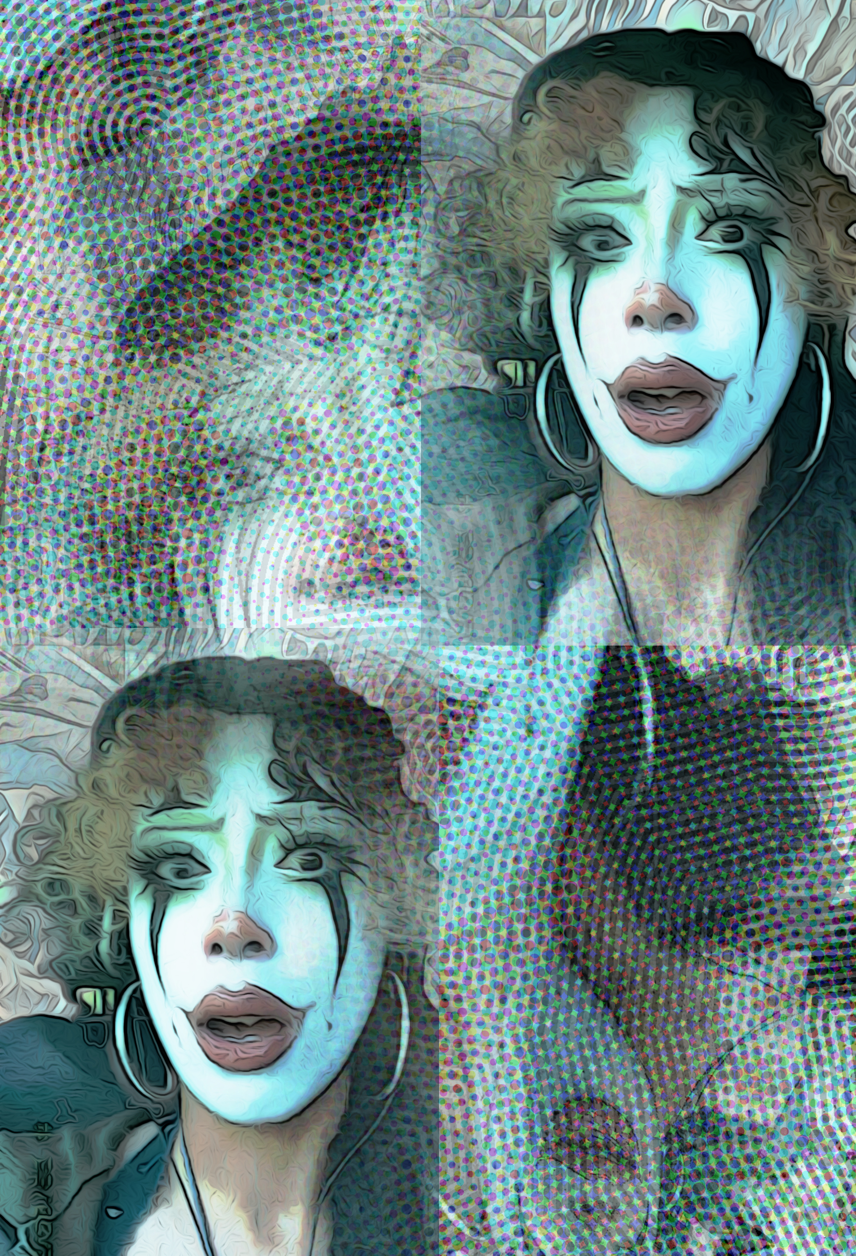 Another image from the Reddit drawme site, a young woman (Conspiracy_Bunni) trying out a new clown-makeup face (Link1). She describes herself as a "twisti clown and circus performer."