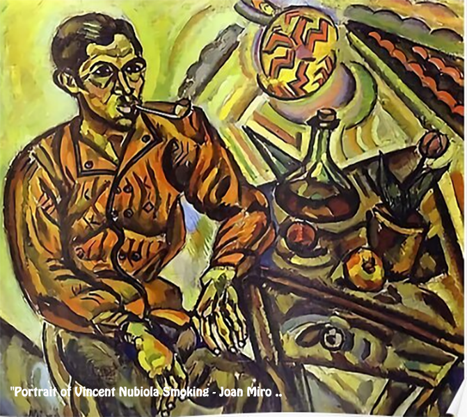 Used the neuralstyle.art digital filter on this, very diluted. Below: first, the original publicity photo; then the direct result of the filter. The style I used was called "Nubiola Portrait Miro" (left image), apparently based on this 1917 painting (right image) by Spanish artist Joan Miro.