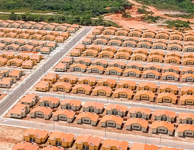 An AI image of a girl on a crackling surface, titled "Golden Fractures: Beauty in Brokenness" by American digital artist Jeff Doutes on DeviantArts (Link1). The image is superimposed on a photo of a new suburban development in Brazil (Link2).