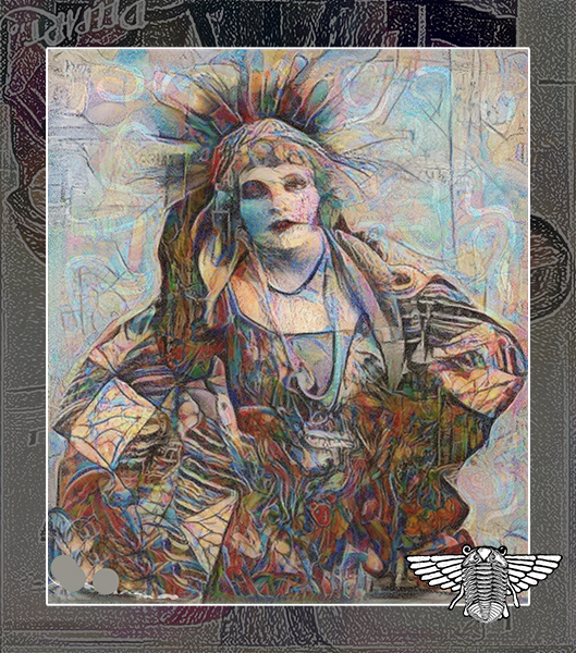 Second version of image, emphasizing skulls and bones, tra la tra la. Image is from 1970 issue of pulp magazine "Forgotten Fantasy" (Link1), a recurring design used to highlight authors "Coming In Future Issues".