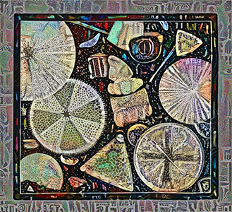 Next row, a photomicrograph of a group of diatoms from the same source. Used an additional DreamScope filter, Stained Glass.