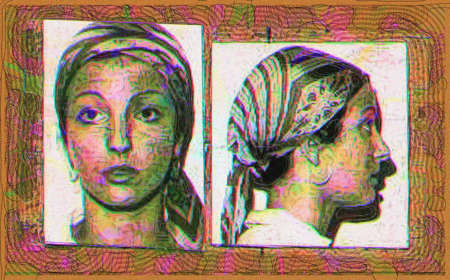 Background is a rearrangement of paint samples from the 1923 Glass, Paints, Varnishes and Brushes: Their History, Manufacture, and Use (Link1). Foreground is a treatment of a photo of a Madchenfigur von der Akropolis ("Figure of a Young Woman from the Acropolis") from the 1894 Eues Korrespondenz-Blatt für die Gelehrten - Und Realschulen Württembergs (Link2) ("New correspondent for the Journal of scholars and secondary schools Württemberg." The image represents a break from my recent styles, since I am quite confused as to the direction I should follow in 2015.