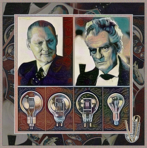 From a 1936 issue of American Cinematographer (Link1), two developments in movie technology. Top, a plastic make-up "clay" is used to sculpt the face of actor Lionel Barrymore (left) into the character of former President Andrew Jackson (right). Bottom, four new MovieFlood bulbs for technicolor lighting from General Electric-Mazda.