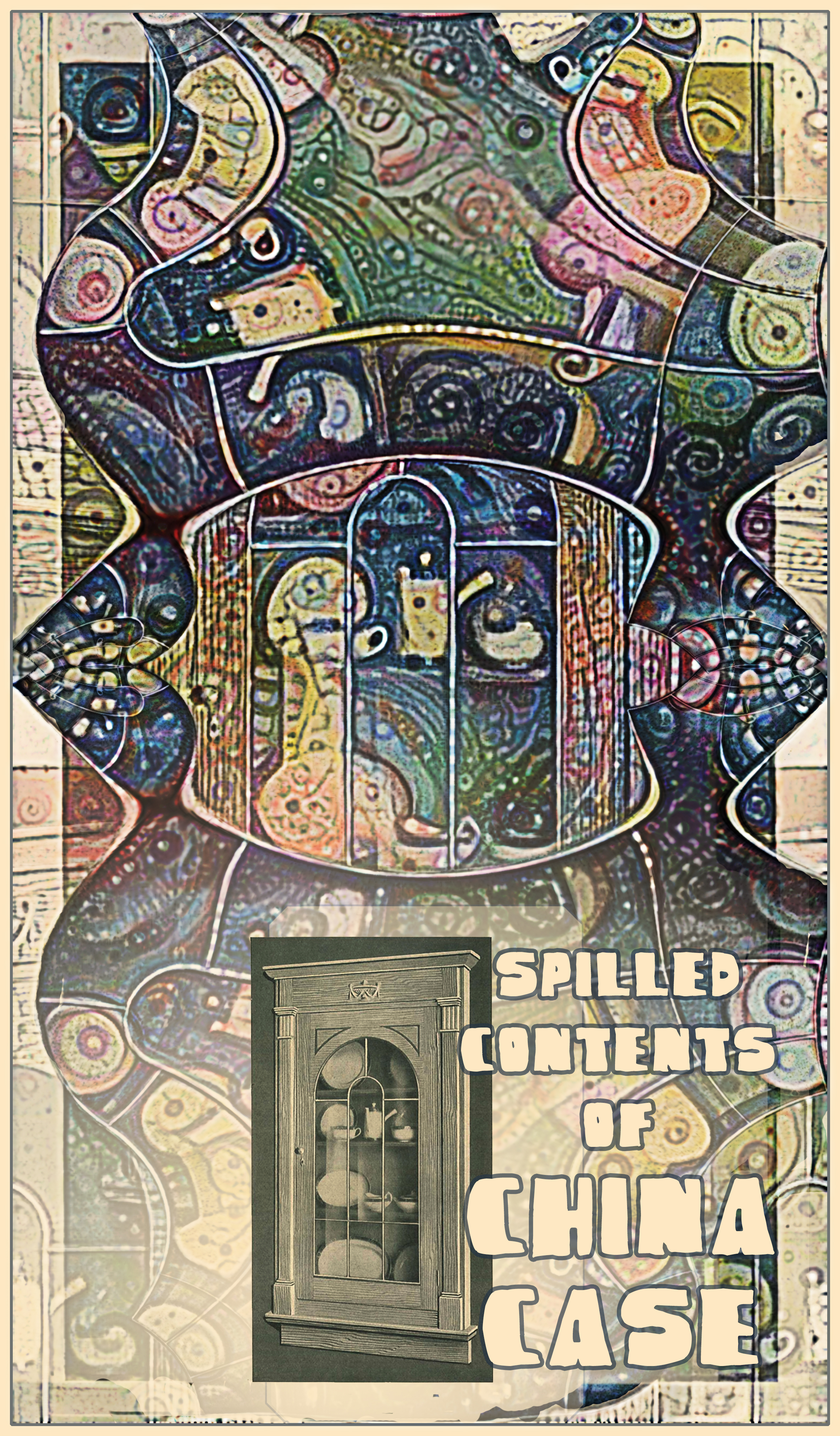 I am continuing my exploration of computer distortion of ordinary images -- here a picture of a "Colonial China Case," a glass-doored wooden cabinet that can be installed into a wall. The image is taken from a wood products catalog (Link1). I am considering entering it into the Plastic Club's April DAILY LIFE & COMMUNITY: