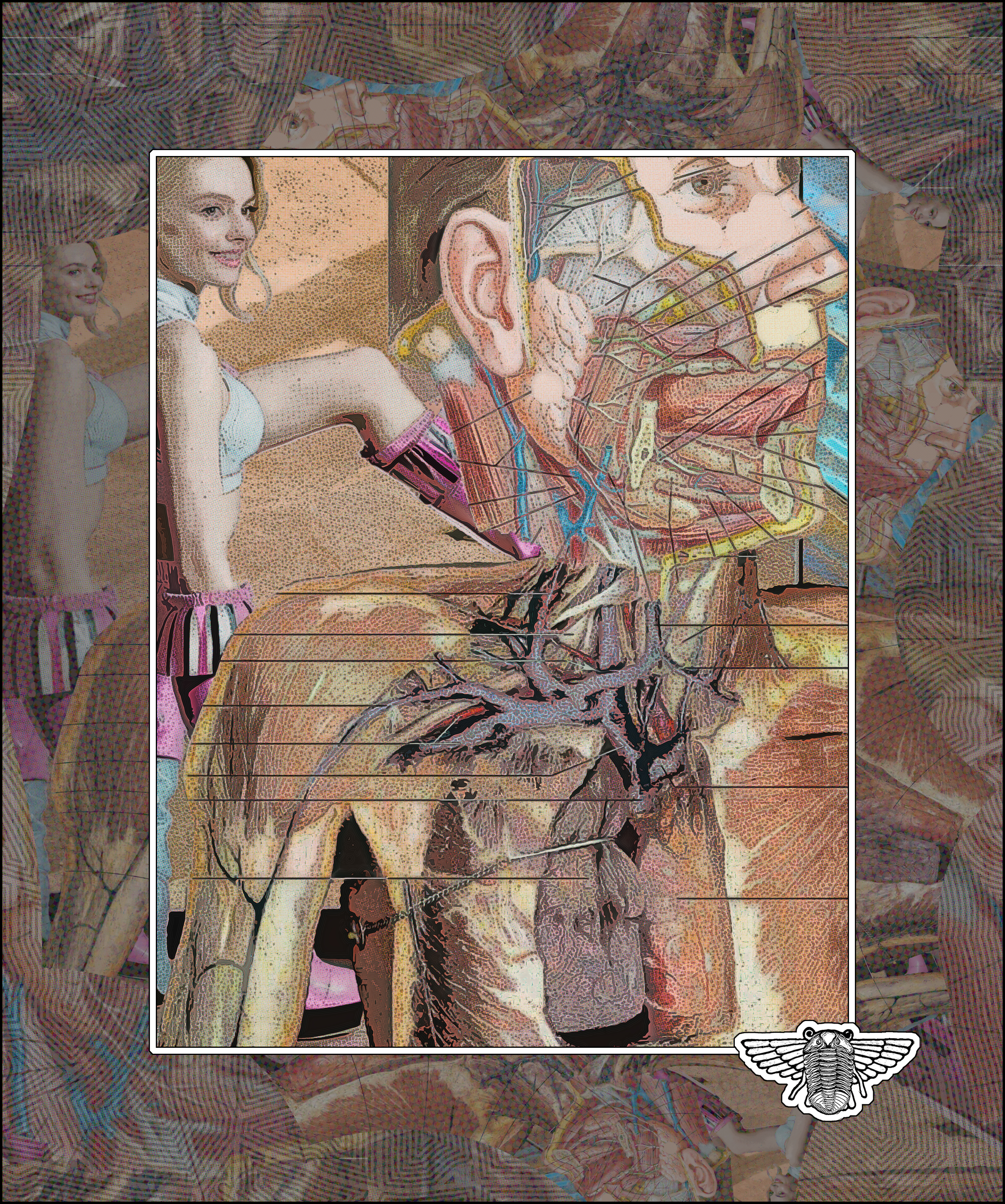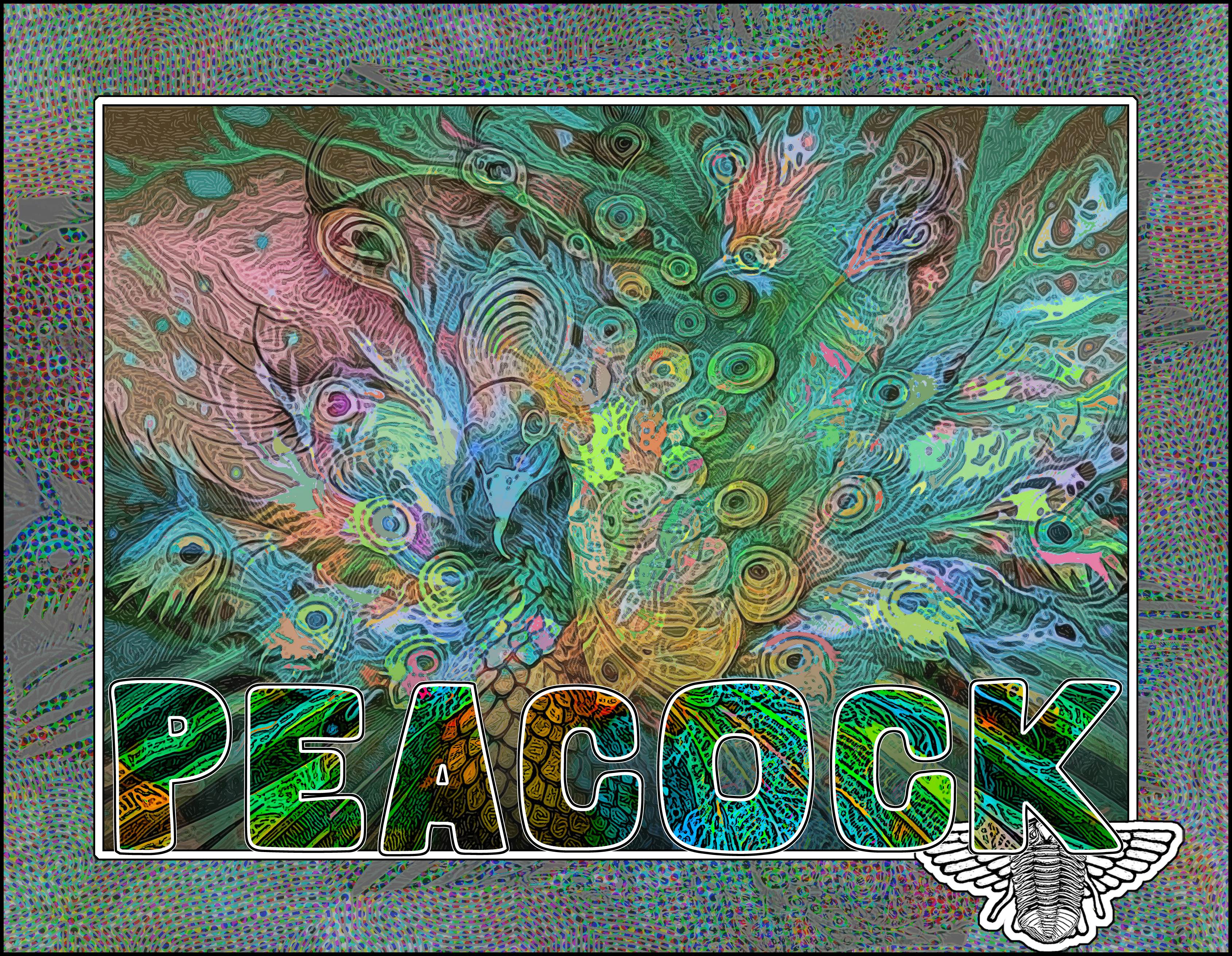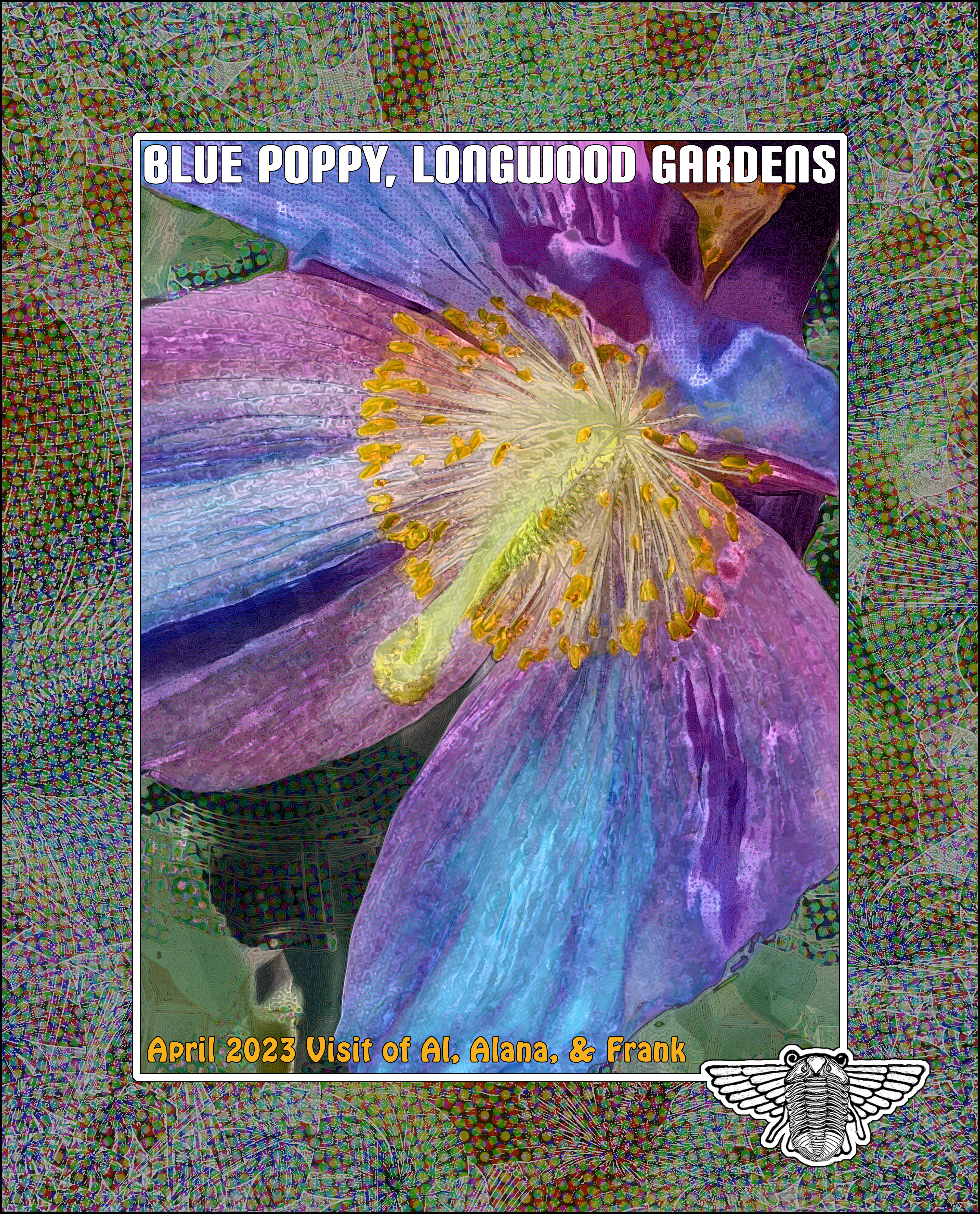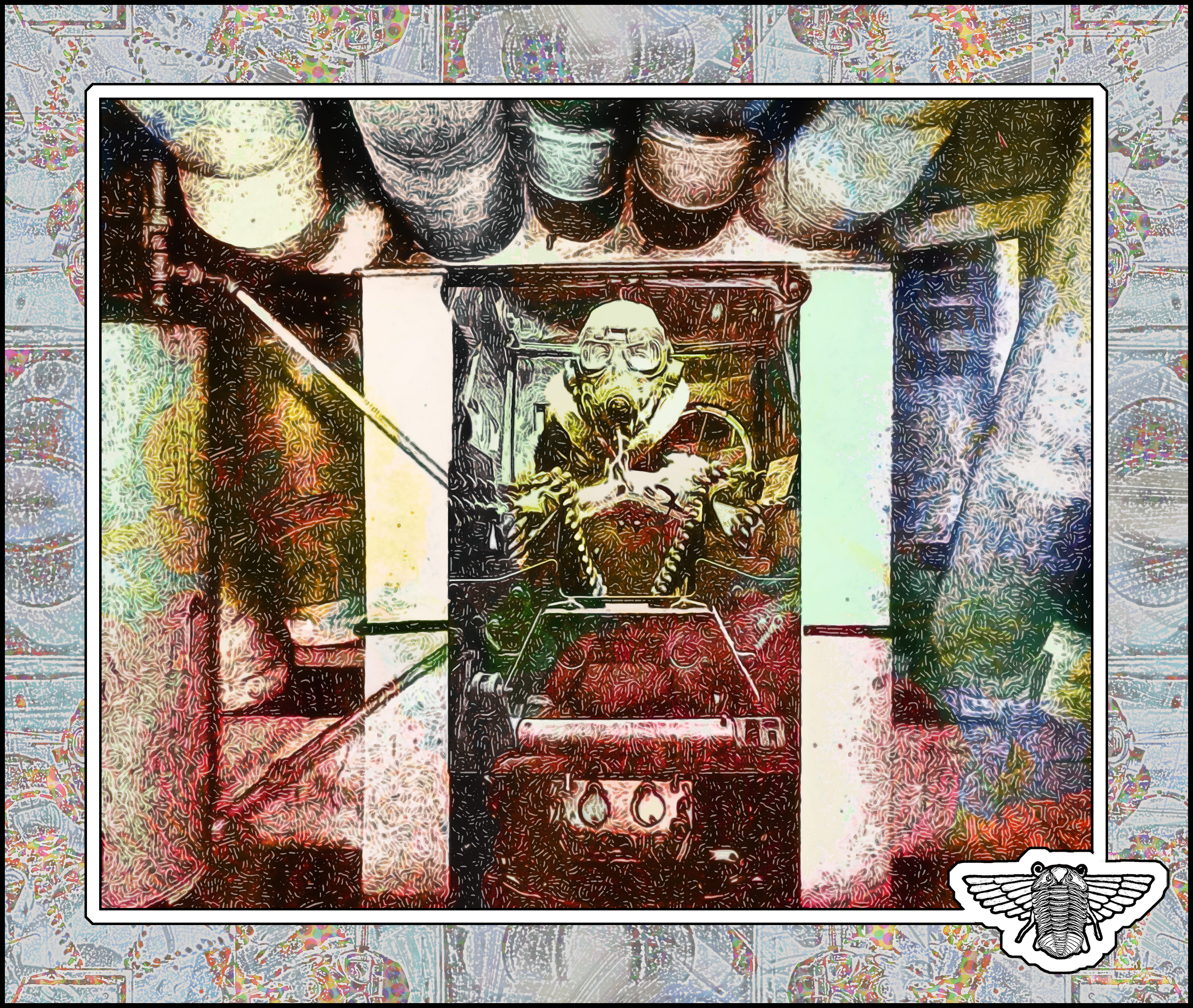 Text, composition, framing, surface texture, coloring, and winged-trilobite logo by Bob Moore