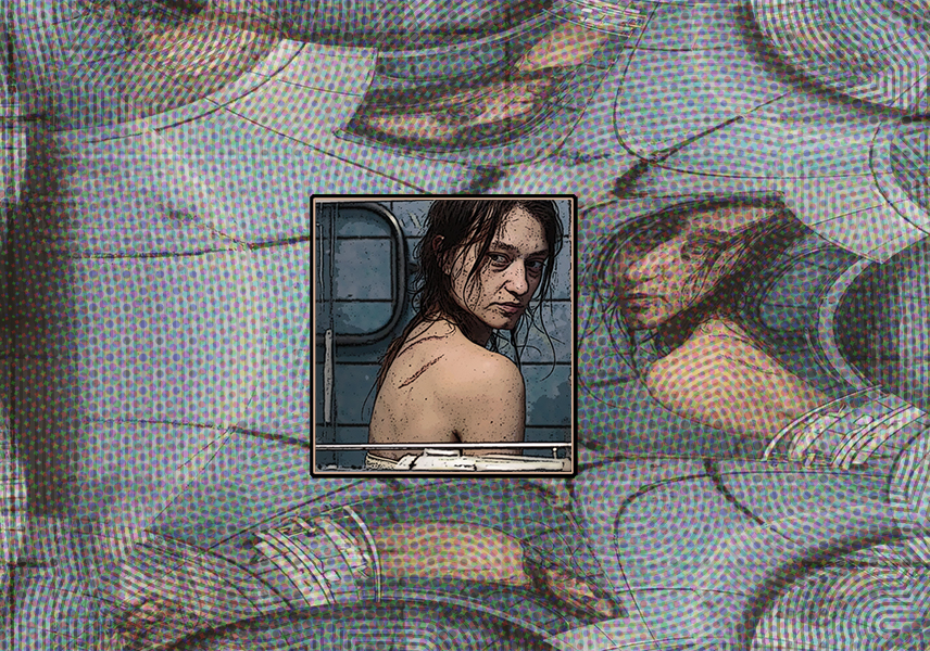 Continuing my exploration of European streaming services, here (from MUBI.COM) is a still from a Ukrainian film "Butterfly Vision" (2022) about a female Ukrainian soldier's return to her family after a prisoner exchange. Here, she takes her first shower after her return and cooly examines the signs of rape and beatings by her Russian captors.