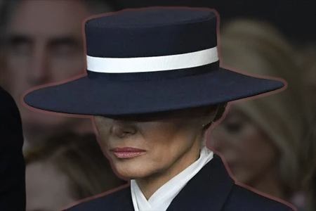 New president Donald Trump's wife Melania at the inauguration, dressed in this austere nun-like outfit, one of her unhappy fashion choices. Like her coat emblazoned with the slogan "I really don't care. Do U?" when she went to visit refugees. Her dark Christmas decorations. Are we really going to have four more years of this loveless arrangement? The heart aches.