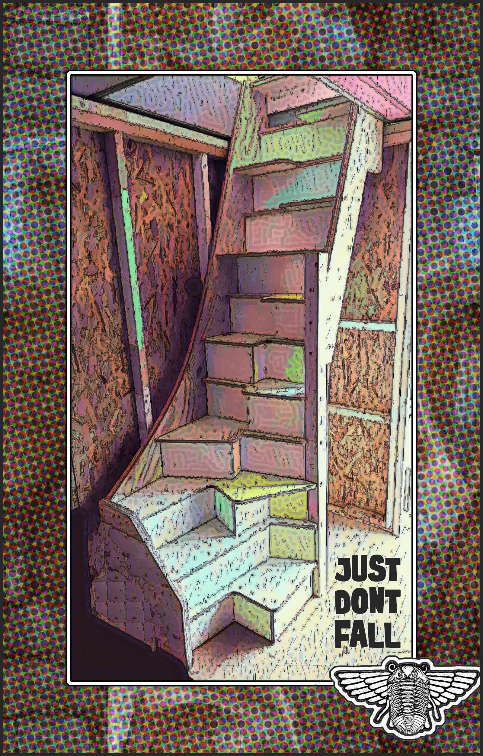 This picture also represents a recurring motif: "JUST DONT FALL", which is the one certainty I have about how other people should live their lives. No matter what legal or medical problems you have right now, friends, you will certainly be worse off if you trip and fall.