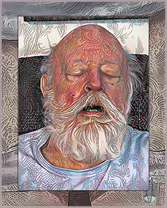My art-show opening was wonderful, but coincidentally with that opening, my website crashed. And it has taken me all this time (July 3 to August 13 -- 43 days) to get it working. The combination of good news (the show) and the bad news (the website) sent me into -- FEELINGS, disrupting my flow of work and making me moody like picture above. (Which is actually a snapshot Janice took of me as I slept, several years ago.) Now, it is wonderful to resume my mental meanderings. To show how wonderful, here is a peppy 70's dance song performed before a European court: As an 80-year-old man, I don't really identify with the song's genetically-blessed 17-year-old heart-breaker, but I identify with the simplicity and elemental force of her brief moment in the social sun; I've been in those artistic moments of throbbing music and dance.