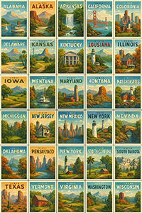 A slick-looking sheet of state stamps, produced by an AI program (Link1), typically flawed, from a Reddit board called "AI Fails," dedicated to AI foul-ups "for reasons such as unrealistic expectations, data issues, and ethical concerns." The image represents my anxiety about the current state of the democratic experiment. Overlaid on the stamps, barely visible, is a leering AI drawing of a girl in school uniform with enormous breasts and a plaid skirt lifted by a Fall breeze to show her underwear. (Link2). It was uploaded to 4Chan and it represents my recognition of the horny frat-boy mentality apparent in today's right wing.
